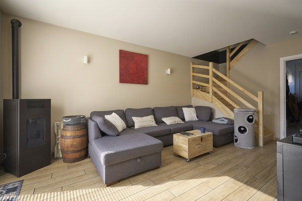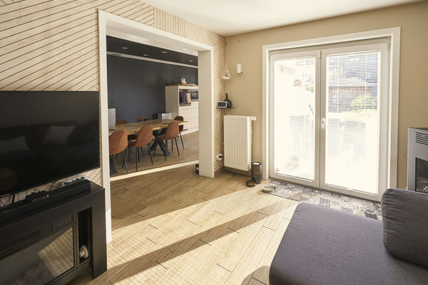 - Un Séjour de +/- 32m² en carrelage