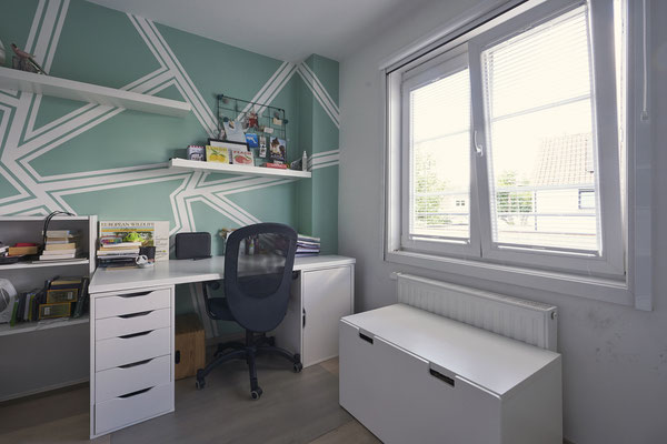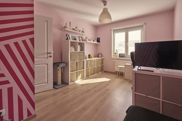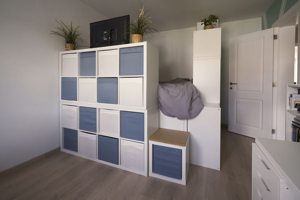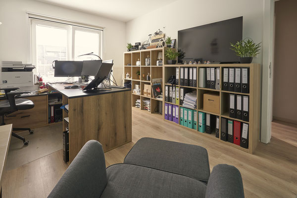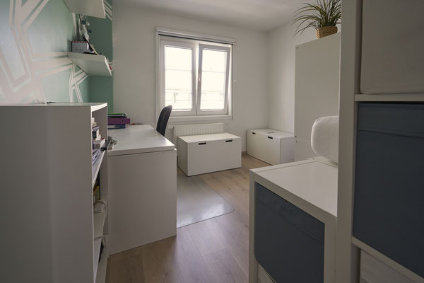 - Trois chambres à coucher en mélaminé (+/-14,5m², +/- 15m², +/- 12,5m²)