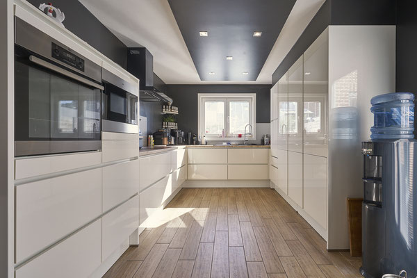 - Une cuisine entièrement équipée de +/- 14m², accès à la terrasse idéalement orientée Sud.