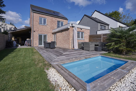 Waterloo, Quartier Joli-Bois, non loin des commerces et des moyens de transport, une lumineuse maison trois façades construite en 2017 sise sur un terrain de +/- 4 ares orienté Sud-Est. Elle se compose d’un hall d’entrée avec WC visiteurs, un séjour de +/-32m², une cuisine entièrement équipée de +/- 14m², une chambres à coucher avec espace douche de +/- 18m² pouvant être facilement convertie en un pièce de bureau ou espace profession libérale. Une buanderie et un Carport pour deux voitures. A l ‘étage un hall de nuit desservant 3 chambres à coucher (+/- 14,5m², +/- 15m², +/- 12,5m²) et une salle de bains avec baignoire, WC et meuble lavabo. Au 2ème étage, sous comble, une 5ème chambres de +/- 20,5m² et un grenier de rangement. A l’extérieur, une pièce d’eau, une cabane de jardin et 3 emplacements de parking. PEB Code : A
